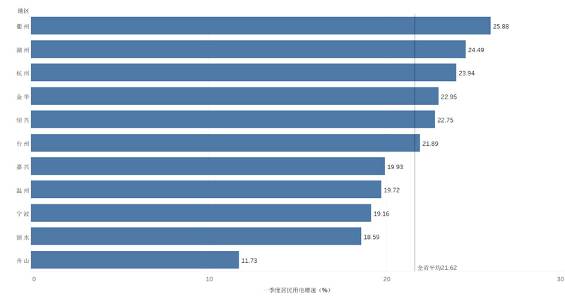 城鄉居民生活用電量方面,得益于2021年新裝接居民用戶數接近20萬戶,居民用電基本盤持續擴大。一季度,杭州城鄉居民用電量達到49.09億千瓦時,同比增長23.94%,增量、增速貢獻度分列浙江第一、第三。