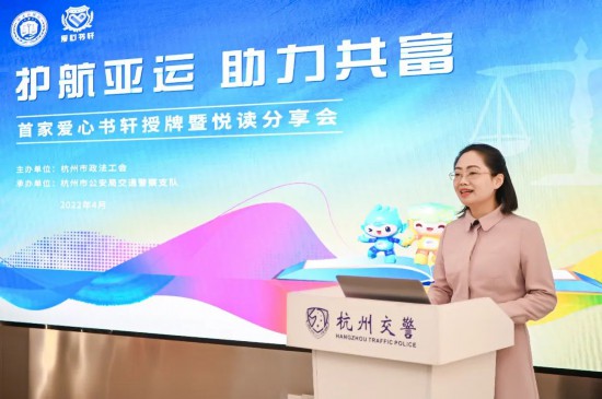 悅讀思想、悅讀人生,讀懂向上的力量、讀懂昂揚的初心。4月21日上午,杭州市政法工會聯合杭州交警以云直播的方式為落戶在杭州公安交警高架大隊的首家“愛心書軒”揭牌。隨后,4位青春洋溢的年輕交警以“護航亞運 助力共富”為主題,分享了他們閱讀學習后的人生感悟。