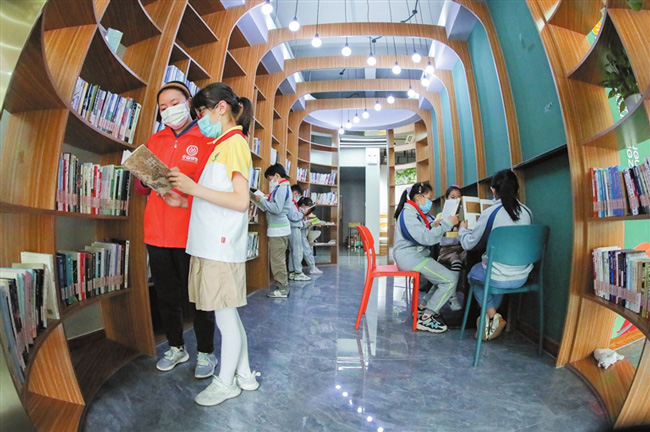 4月22日,湖州龍泉街道祥和社區聯合龍泉小學在幸福鄰里書吧開展“讀書日,品書香”主題教育活動,推廣家門口的“閱讀加油站”,讓居民享受讀書樂趣。(陸一平)