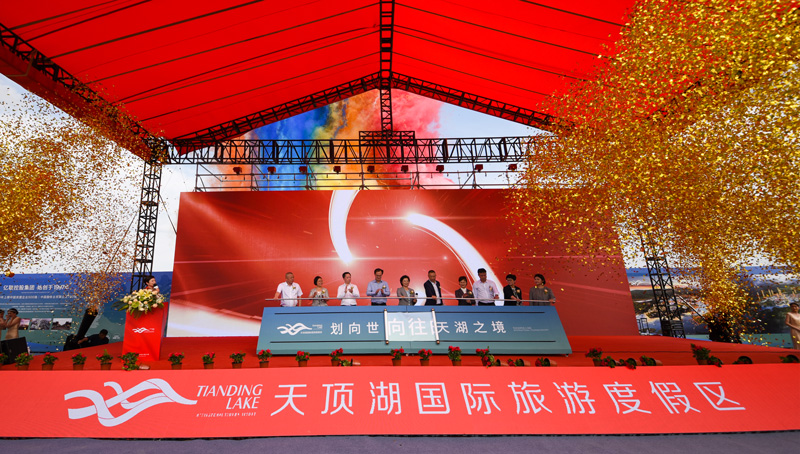 4月25日下午,在溫州市文成縣天頂湖畔,隨著一聲開工令下,吊車、挖掘機不停穿梭,總投資108億元的文旅項目天頂湖國際旅游度假區動土開建。作為當地首個百億文旅項目,該項目實現了文成重大項目建設的新突破,也將助推當地從觀光型旅游向休閑度假型旅游轉變。