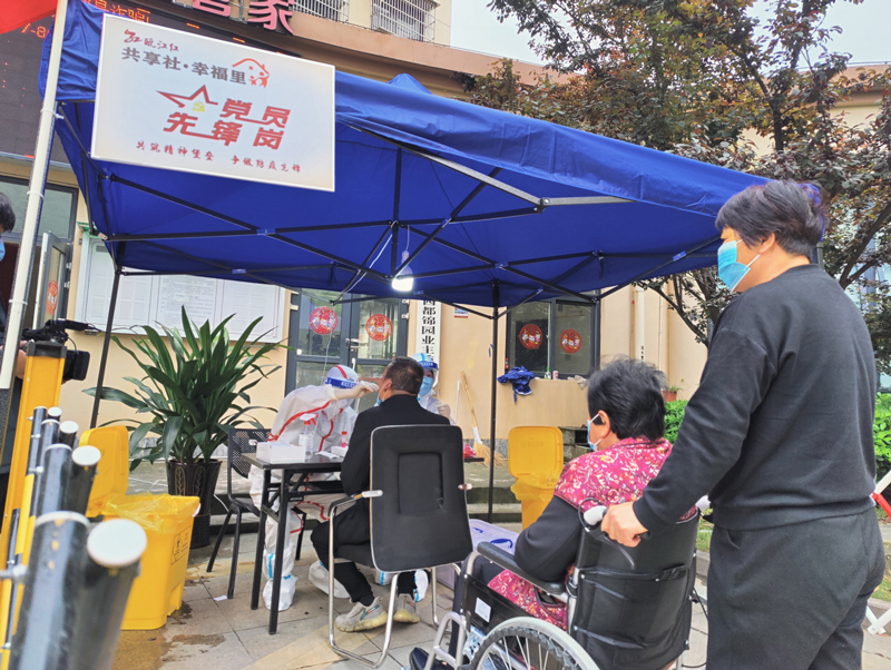 點位的搭建、運行彰顯出“黨群連心·分組包戶”工作特色。4月29日晚上,小區黨支部在業主微信群內發布“尋醫啟事”和志愿者招募令,住在小區內的外垟村衛生室醫生陳建慶帶頭響應,“我就是醫生,我來負責核酸采樣!卑胄r內,就有20余名支部黨員、積極分子報名。第二天上午7時,首批12名自治式核酸采樣點志愿者準時到位,來自藤橋鎮防控辦的核酸檢測物資也如期送至。搭篷、設桌、圍欄、畫線……在藤橋鎮黨委及鎮防控辦指導下,一個規范的核酸采樣點迅速搭建。居民蔡金祿表示:“在家門口設點很貼心。我們小區高齡老人多,平時去鎮里檢測挺不方便的!