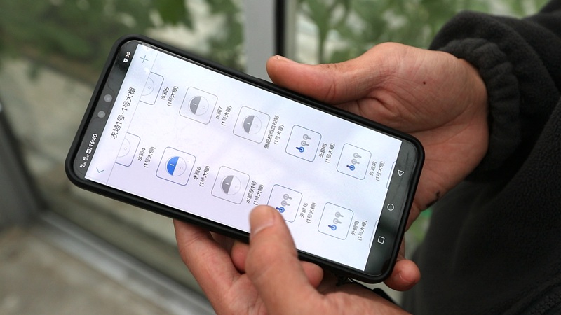農業園技術員在手機端遠程操作,對大棚進行管理。陳瑞周攝