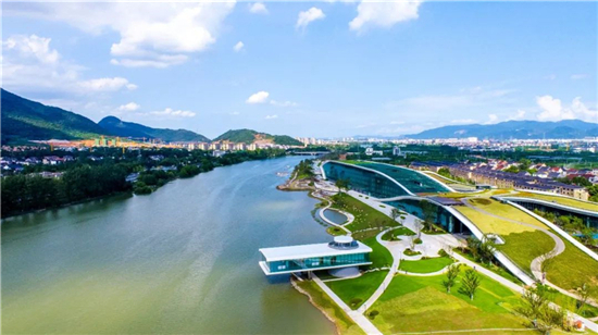 富陽水上運動中心位于杭州市富陽區北支江南岸、東洲街道華墅沙村,與黃公望隱居地隔江相望。場館設計秉承“綠色”“智能”的杭州亞運會辦賽理念,以“山”為形,以“水”為韻,將起伏山脈、蜿蜒的流水寓于設計之中,使場館與周邊環境融為一體。