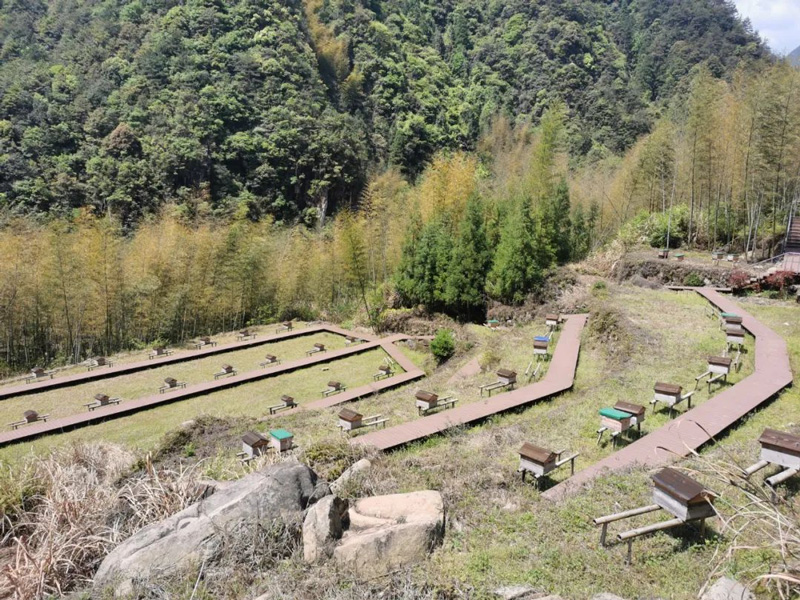 當前,山間開花植物多,有利于蜜蜂繁殖。文成縣仙花谷農業專業合作社負責人周光彬趁著這個季節擴大蜜蜂養殖規模。在仙花谷蜂場里,村民劉玉光正向周光彬學習中蜂養殖技術。開始養蜂后,劉玉光不斷學習提升專業知識,養殖的蜜蜂從原本的5箱增加到現在的30多箱,收獲的蜂蜜由養殖戶兜底回購。劉玉光說:“以前種地,只能自給自足,F在養了幾箱蜂,收入高多了!