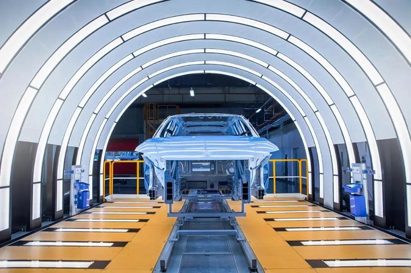在江淮蔚來先進制造基地里拍攝的智能新能源汽車生產線。張大崗攝