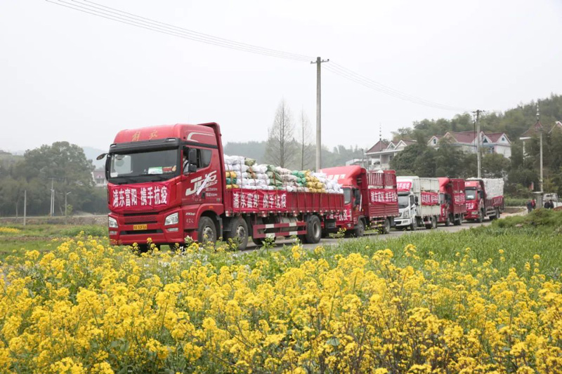 3月28日上午,5輛滿載早筍的貨車從杭州富陽出發;3月29日晚,5輛共載有39噸蔬菜、5噸豬肉和400箱水產品的冷藏運輸車從溫州出發;4月5日上午,6輛載著50噸共8000箱新鮮時蔬的貨運車輛,從臺州溫嶺出發……縱使他們的出發地不同,目的地只有一個——上海。
