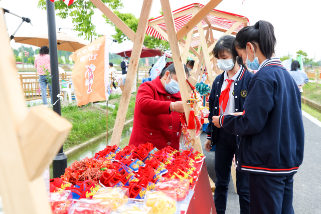 最近火爆朋友圈的“稻蝦套養”小龍蝦垂釣園,這次也特別設置了共富集市,同樣熱鬧非凡。五杭村虎頭鞋歷本袋、大運河1986文創園·晚峰榫卯積木、臨平區運河街道亭趾食品廠、新宇村搪瓷工藝……現場設置的20多個攤位涵蓋了文創、非遺、農產品等方面,讓游客充分體驗運河的風土人情。