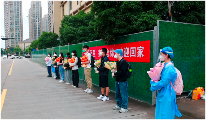 當天12時許,車隊抵達集中隔離點,工作人員還向每位學子送上鮮花表示歡迎,并囑咐大家安心隔離。