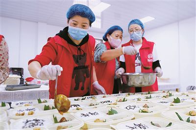 “這個‘肉粽’名叫‘安時處順萬事中意’,是今年我鎮敬老助殘‘端午特餐’中的一道主菜!备胶f傸h委副書記馮淑鋒介紹,在端午節即將到來之際,10多名廚藝精湛的附海志愿者相聚該鎮花塘村,烹制100份特殊晚餐,送給居家養老的老人和行動不便的殘疾人。