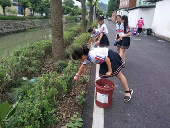 蕭山區瓜瀝鎮民豐河村組織轄區內學生及志愿者組成垃圾分類宣傳隊,對民豐河河道兩岸存在的環境死角進行清理,并攜帶分類宣傳冊深入河道兩岸的農戶及出租戶居住區,進行垃圾分類針對性的宣傳,鼓勵住戶主動養成分類習慣,做新時代文明環保好市民。