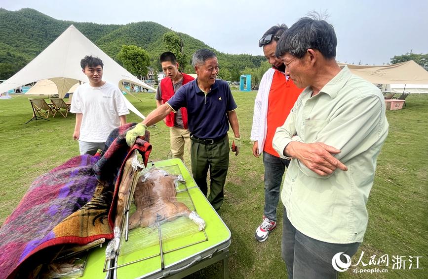 在余村黨群服務中心對面不遠處有一片草坪,今年入春以來,這里掀起了露營熱?!?只羊、1頭乳豬、16只雞,這都是游客預訂的……”下午4點,橫路村村民李小華來到草坪上為客人烤制晚餐。