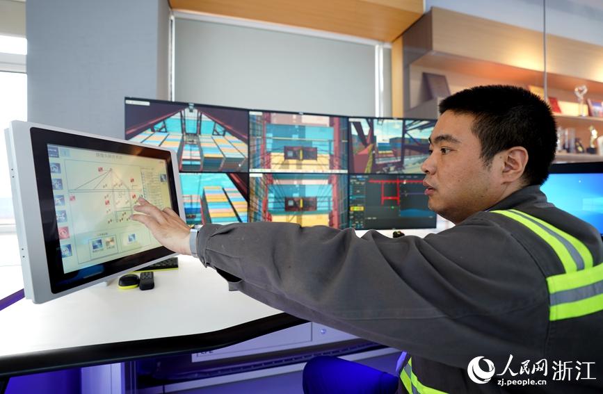 竺士杰已成為橋吊班大班長,管理著300余名橋吊司機。人民網 郭揚攝