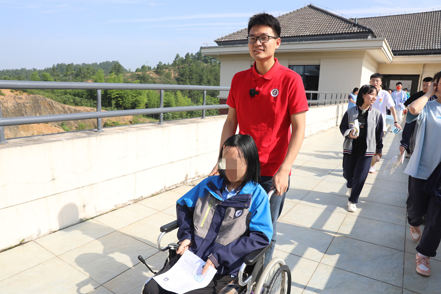 “高考了,老師最后再背你一次……”潘立耀和學生們一起,小心翼翼地把周夢婷放在輪椅上,生怕出點岔子,“我們的教室在5樓,由于電動輪椅搬運不便,教室里也一直給她放著一個手推輪椅!