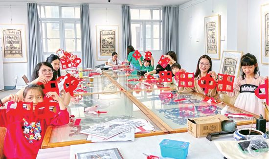 在寬敞明亮的特色體驗室里,一幅幅生動、精致的樂清細紋刻紙作品有的掛在墻上,有的擺在長桌上,大大小小的作品令人驚艷不已。隨后,樂清細紋刻紙傳承人鄭梅貞為孩子和家長們授課,只見她手指翻飛,用嫻熟技藝,很快就將一幅精致的作品展現在大家的面前,孩子們看了紛紛拍手,躍躍欲試!拔乙彩堑谝淮误w驗樂清細紋刻紙,真的是看起來容易剪起來難!币幻议L笑道,孩子們很感興趣,上完課后還覺得不過癮,跟鄭老師又多要了一些紙張,想帶回家繼續練。