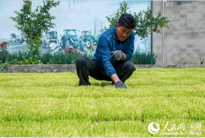 2022年5月25日,種糧大戶程夕兵在查看水稻苗長勢。人民網 陶濤攝