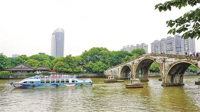 兩艘船2022年3月底進廠,改造前后經歷兩個多月,杭州水上發展集團有限公司相關負責人說:“為了更好地發揮運河游船的文化特色優勢,我們緊扣‘中國新時代、杭州新亞運’的目標定位,精心改造升級了兩艘水上巴士。”水上巴士還是亞運特許零售點,游客在船上可購買到心儀的亞運紀念品,船舶運營過程中還會途經亞運會吉祥物“宸宸”的原型——拱宸橋,兩岸的市民游客還可與亞運特色船、拱宸橋來個合影。