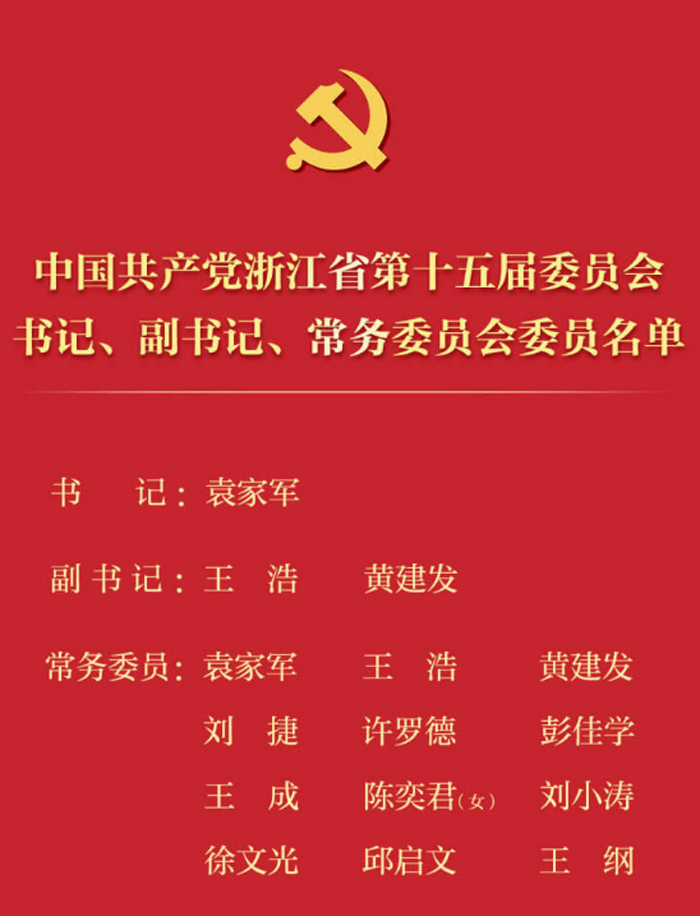 會上,全體委員以無記名投票方式,選舉產生了中國共產黨浙江省第十五屆委員會常務委員會委員;選舉產生了書記、副書記。袁家軍同志當選書記,王浩、黃建發同志當選副書記。
