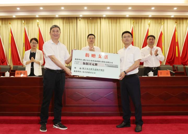 安吉一銀行定向捐贈保護資金500萬元。夏鵬飛攝