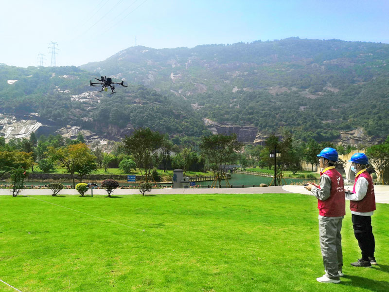 操作無人機。龍灣供電分局供圖