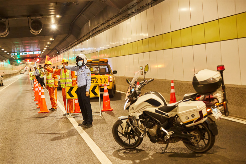 演練場景二模擬了隧道照明配電箱因線路老化冒煙,引發明火,展示了隧道內消防感知設備第一時間自動報警,中控人員按應急預案要求,切換指示燈,開啟應急廣播,并報余杭區行政執法指揮中心,配合交警對隧道進行封閉,由消防進行專業滅火處置,火勢熄滅后養護單位迅速對損壞電箱、線路進行更換修復,并恢復交通。