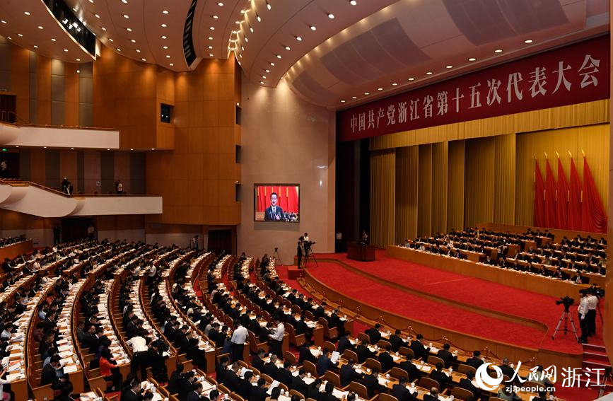 6月28日,中國共產黨浙江省第十五次代表大會在省人民大會堂開幕。人民網 郭揚攝
