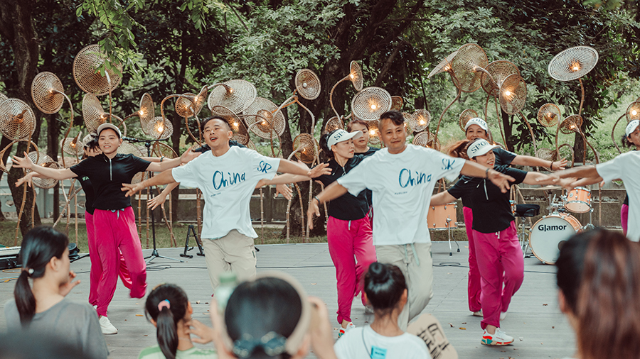 廣場舞引來不少游客駐足觀看。宣州區委宣傳部供圖