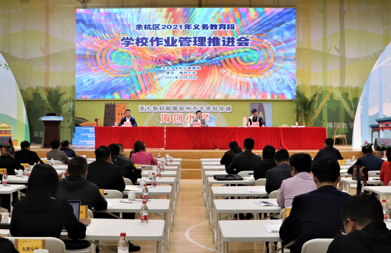 余杭區召開2021年義務教育段學校作業改革推進會強化作業管理。余杭區教育局供圖