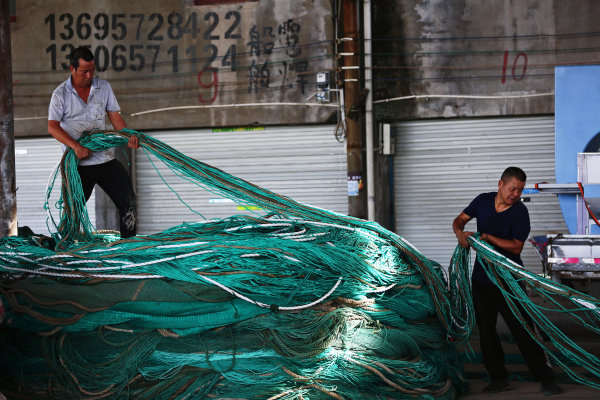 漁民利用休漁期在家里修補、編織漁網,確保伏休后正常投入生產。王志攝