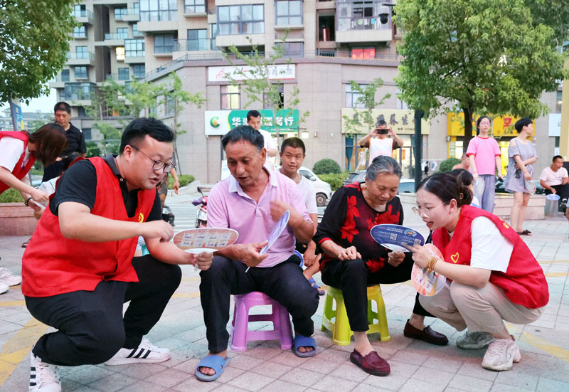 “阿姨你看,扇子上印著的《民法典》和法治宣傳信息,都是和我們生活息息相關的內容,比如說借錢的時候如果在本金中預先扣除了利息,那接下來應當按照實際借款金額還本金和支付利息……”7月27日傍晚,浙江桐廬縣江南鎮市民廣場上格外熱鬧,“法助共富 法護平安”桐廬縣司法局百場電影下基層活動為炎炎夏日增添了一絲涼意,江南鎮法治宣傳志愿者們為大家送去一把把普法涼扇,現場解答群眾咨詢。