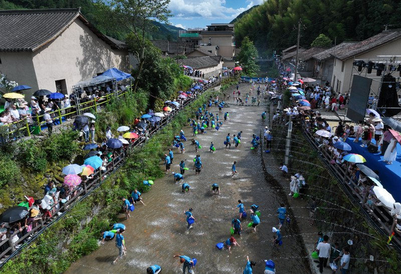 7月8日,麗水市云和縣崇頭鎮第三屆納涼狂歡節在云和梯田景區旁的千年古村黃家畬村拉開帷幕。穿漢服游千年古村、動手制作當地美食、稻田抓魚享受親子時光、參觀展示館品味銀礦文化……精彩紛呈的活動,讓游客感受到了納涼狂歡節的快樂。