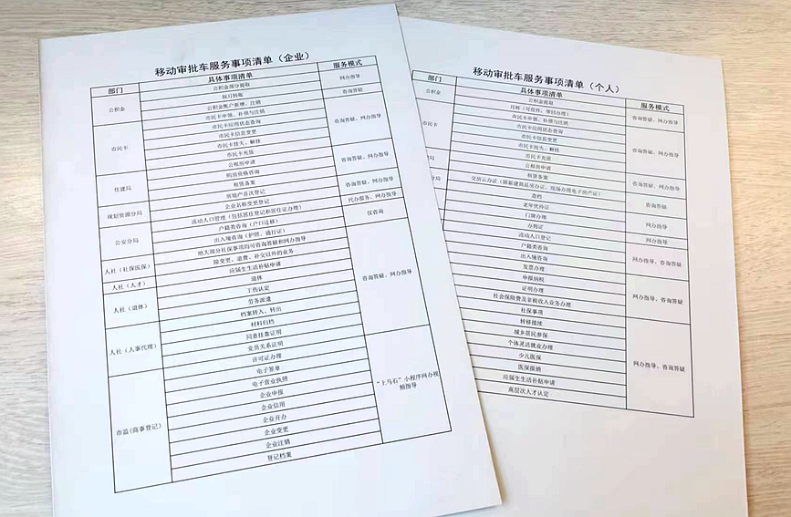 “移動審批車”進社區、進企業的高頻服務事項清單。王璐璐攝