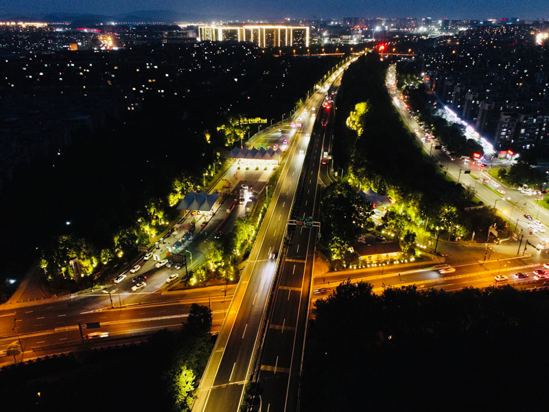 “燈光比以前亮堂多了,不但可以減輕夜間開車的視覺疲勞,入城口附近的景色也變得流光溢彩起來,讓人心情舒暢?!卑?,杭州市民姜女士開車經過杭州余杭區五常收費站,不禁對華燈初上的入城口夜景感嘆道。