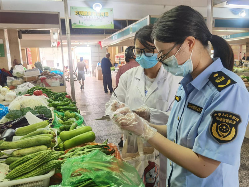烈日炎炎,市民們格外關注食品安全,特別是蔬菜農藥殘留、水產品違禁藥物殘留等情況。為進一步普及食品安全知識,提升公眾對食品安全的參與度、感知度和滿意度,和孚市場監管所聯合檢測技術公司,共同開展了“你送我檢”“你點我檢”食品快檢進市場活動,讓群眾買得安心、吃得放心。