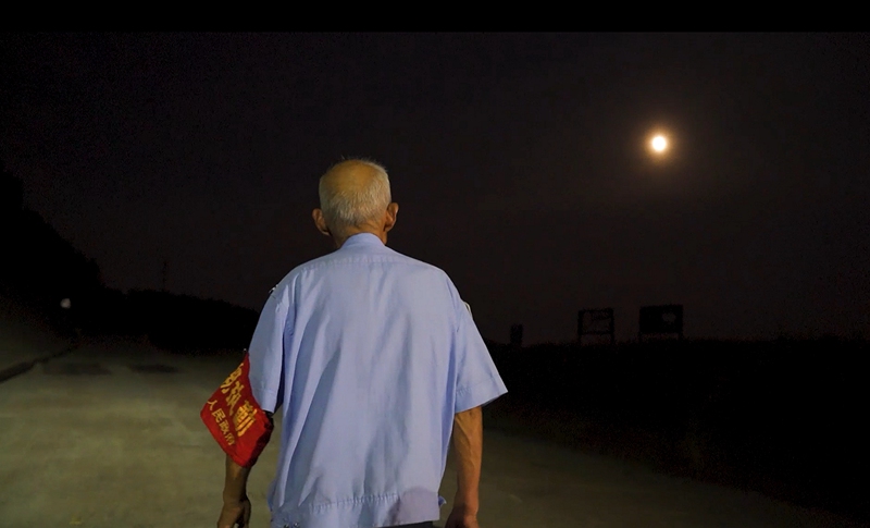深夜,趙云祥仍堅持在江堤上巡查。視頻截圖