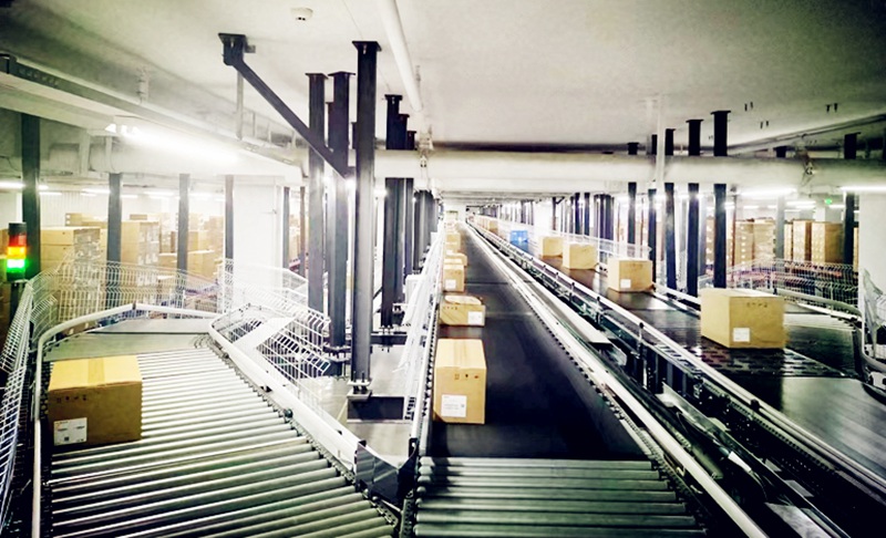貨品經傳送帶自動運輸入庫。浙江大華股份供圖