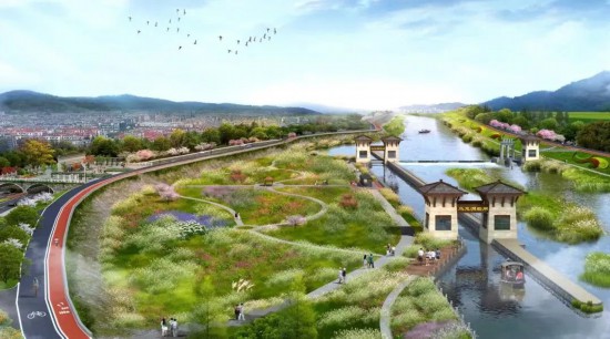 西險大塘“三賢治水”文化豐碑效果圖。杭州林水局供圖