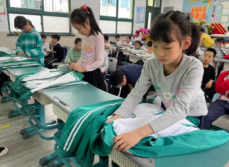 杭州西湖小學二年級學生比賽疊衣物。受訪者供圖