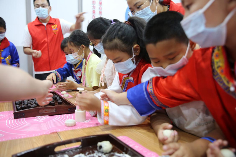 9月7日,在舟山市岱山縣秀山鄉“紅社如家”新居民黨建聯絡點,20多名來自不同民族、不同地區的新居民子女,聚在一起提前慶中秋。孩子們揉面團、搓圓餡料,忙得不亦樂乎。