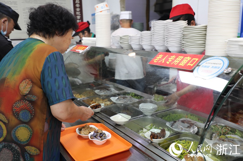 每到中午11點,位于浙江省杭州市西湖區靈隱街道東山弄社區夕陽紅路的夕陽紅膳廳老年食堂內,總是座無虛席。老人們端著餐盤,瞧著墻上掛的“今日菜譜”,再去老人專用窗口打菜。