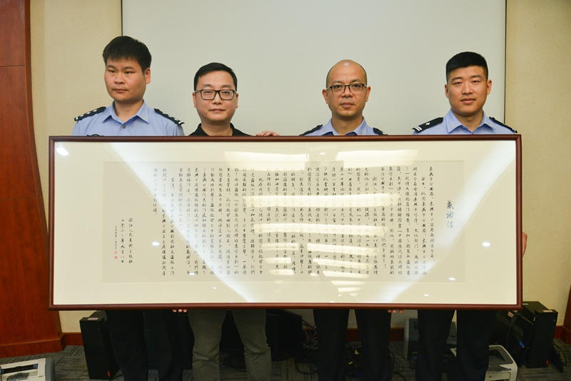 浙江人民美術出版社給嘉興市公安局南湖區分局送去感謝信。吳宇哲攝