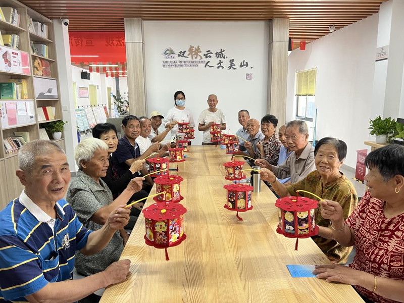 愛老敬老孝老是中華民族傳統美德,老年人群的文化生活也是倉前街道文化禮堂關注的重點。2022年中秋節,倉前街道高橋村文化禮堂、吳山前村文化禮堂、靈源村文化禮堂組織老年村民開展了趣味中秋活動。在活動現場,倉前的老人們制燈籠、聊家常、品月餅,文化禮堂逐漸成為老年村民的“第二家園”。