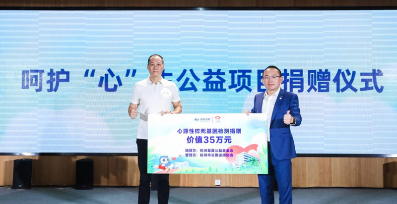 成立儀式現場,基金會首個重點項目“呵護‘心’生”正式啟動,并向杭州市長跑運動協會捐贈“心源性猝死”基因檢測項目,推動相關基因檢測在急救中的應用,助力公眾急救制度體系建設。