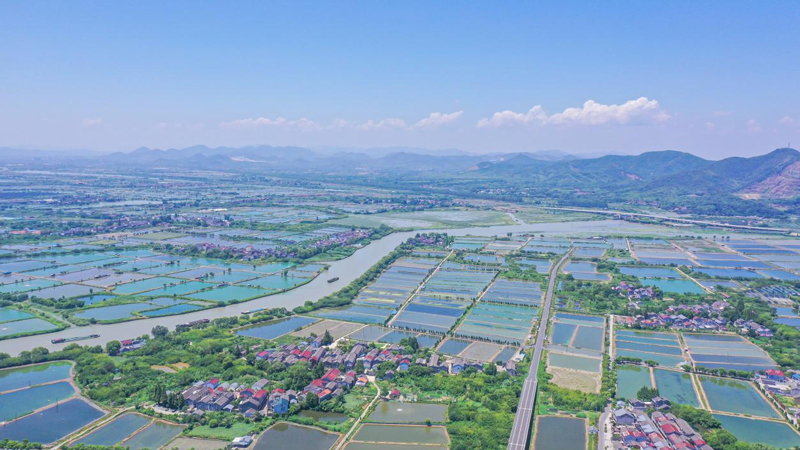 9月20日,浙江省湖州市南潯區和孚鎮和孚漾水面波光粼粼,呈現出岸青水碧的生態之美。