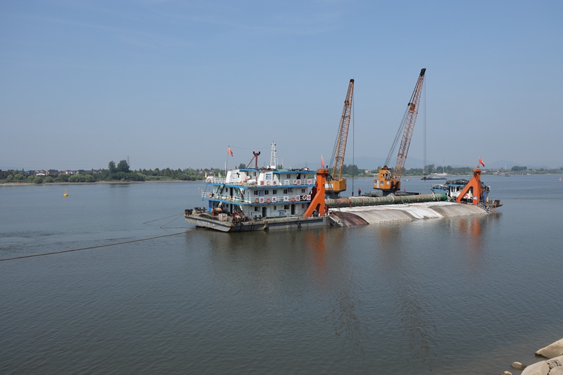 砼鉸鏈排鋪設。浙江省水利廳供圖