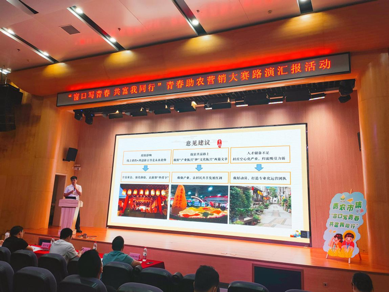 在一個月的實踐調研活動中,60名年輕干部共調研農產品25種,走訪農戶、合作社、供貨商60余次,開展助農直播、青農夜市活動6場,直播和現場銷售累計金額10萬元,形成農產品營銷思路10份。在最后的路演匯報中,年輕干部們圍繞農產品營銷的心得體會和助農思路兩方面進行了匯報。