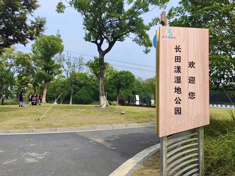 經過整治改造的長田漾濕地公園綠意盎然。蔣仕斌攝