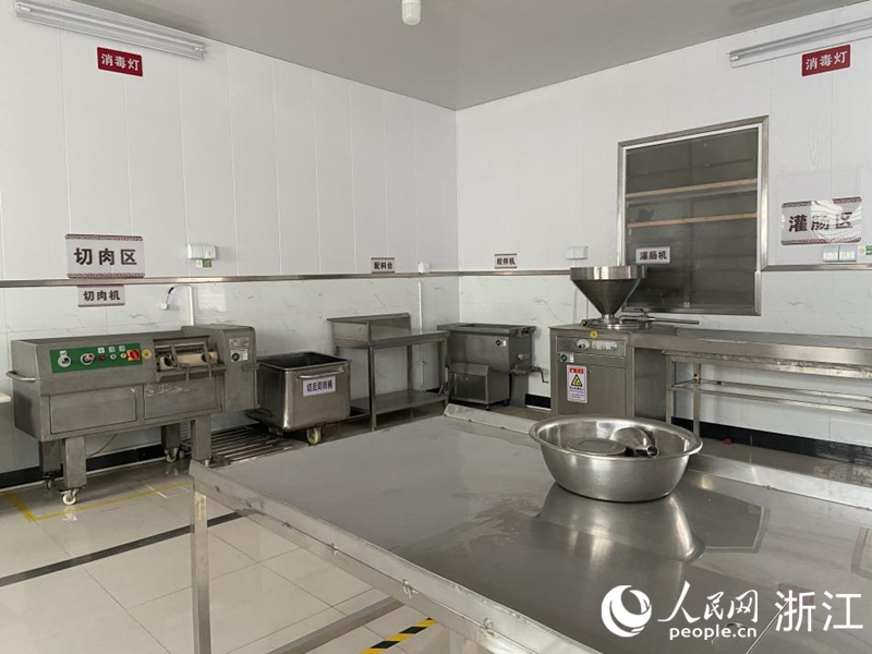 安昌古鎮制作臘腸的智慧化小作坊。人民網 方彭依夢攝