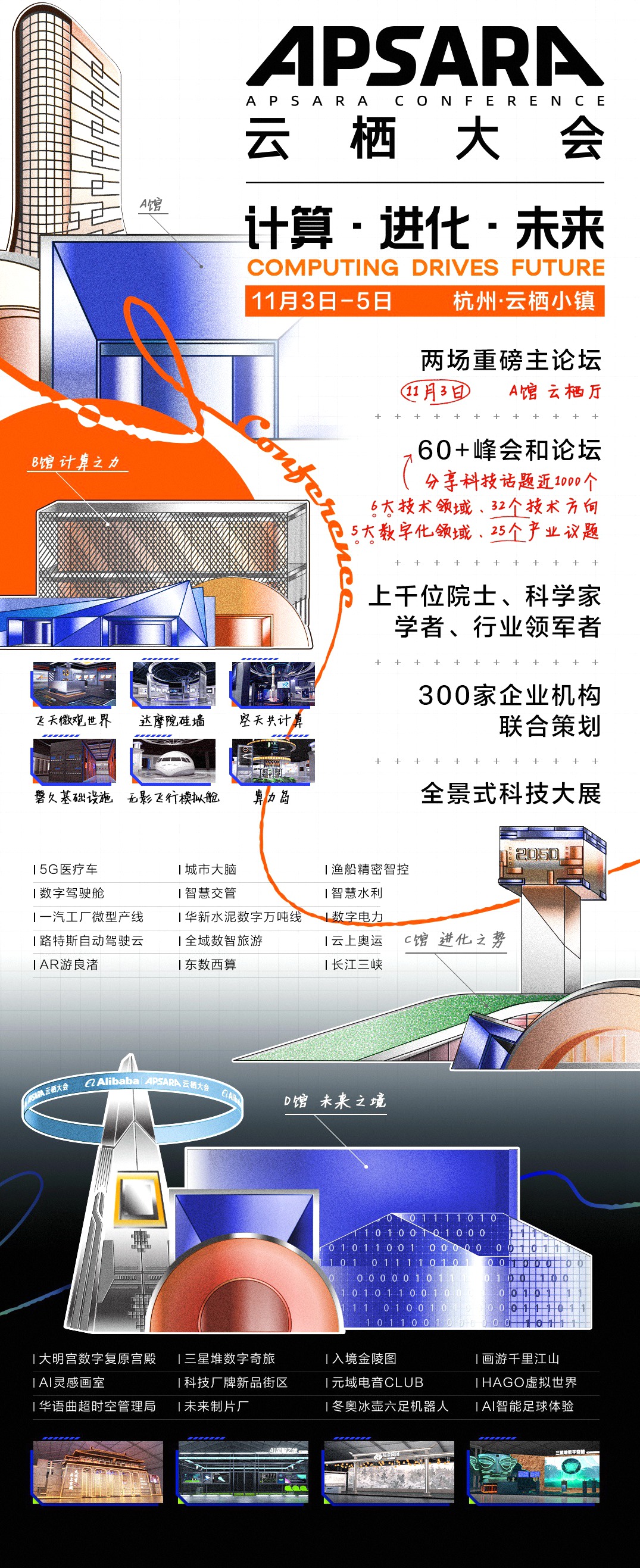 本屆云棲大會將在杭州云棲小鎮內設立三大展館,并帶來超過1000項科技新品發布。三大展館分別以“計算之力”“進化之勢”“未來之境”命名,涵蓋云計算、達摩院、前沿科技、數字化、元宇宙、消費電子、自動駕駛、機器人等眾多主題展覽。