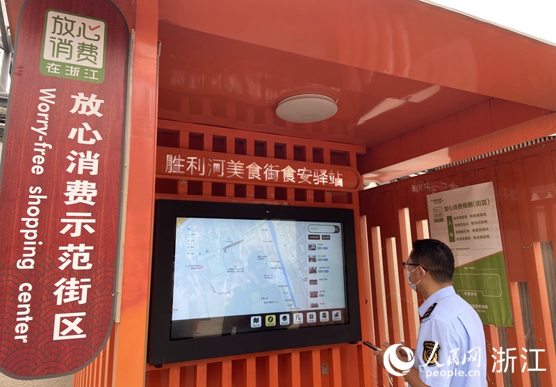 如今,漫步在勝利河美食街,街頭、街尾兩端各設立了一個“勝利河美食街食安驛站”,設置商街介紹、美食導航、食安在線、特色推薦、最新活動五大模塊,集中美食街全貌,消費者動動手指就能查詢商家食品安全信息、陽光廚房和美食導航等。