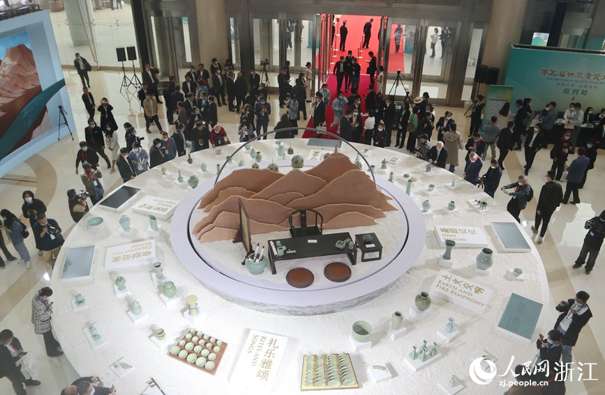 大會開幕式當天,在浙江省人民大會堂,能從視覺、聽覺、觸覺全方位感受青瓷魅力,“宋瓷夢華”——青瓷沉浸式交互藝術展在此舉行。